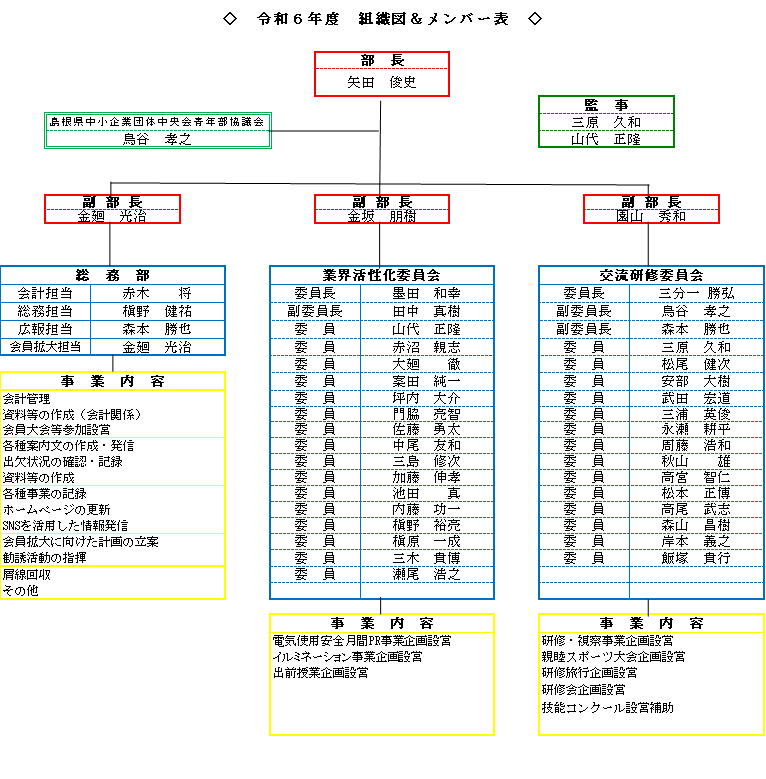 1) 島根県電気工事工業組合と組合員の資質の向上発展のために、次代を担う青年組合員と組合員2世代及び